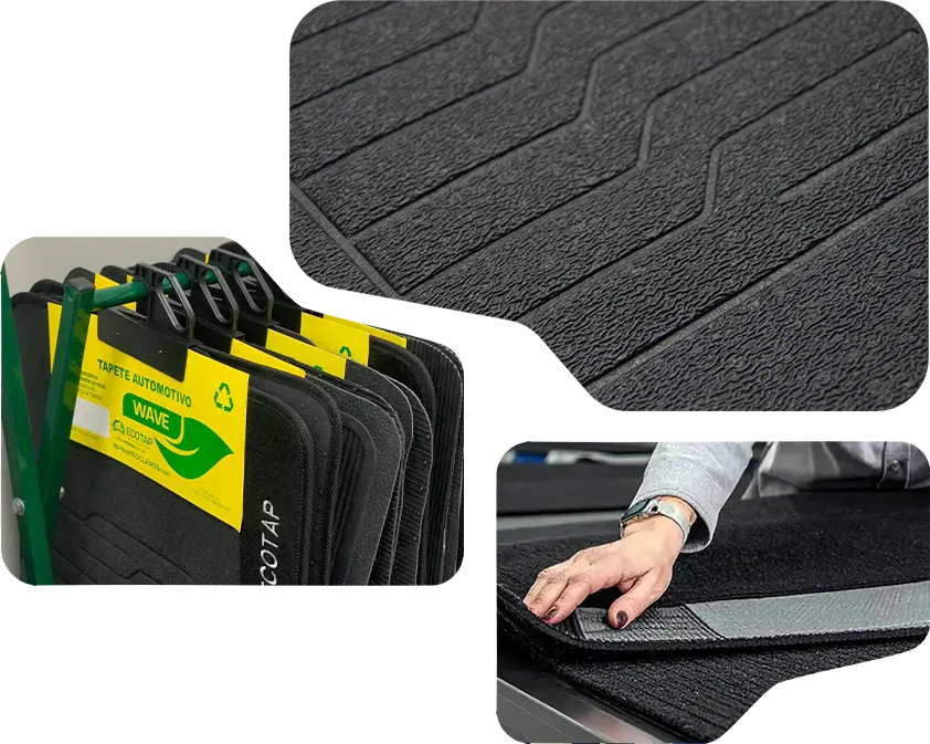 Na Ecotap, cada tapete automotivo é resultado de tecnologia, design e consciência ambiental. Reciclamos mais de 300 toneladas de sucata de PVC por mês e transformamos resíduos em produtos de alto desempenho.